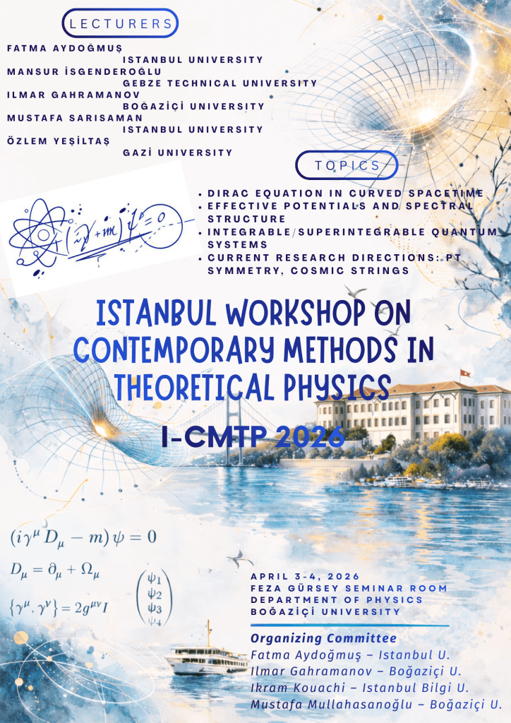The lectures will be held on April 3-4, 2026, in the Feza Gürsey Seminar Room at the Department of Physics, Boğaziçi University, Istanbul, Turkey.